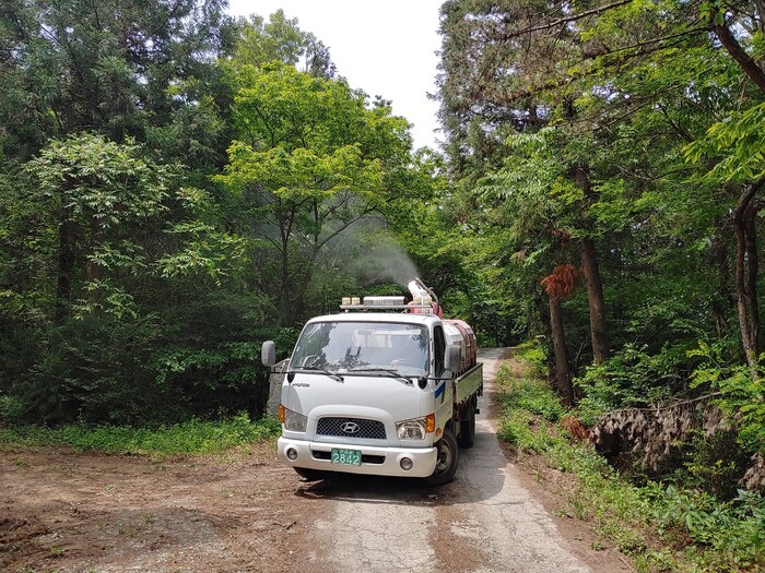 | ▲ 농림지 공동방제./ 자료사진 = 강진군 제공 |