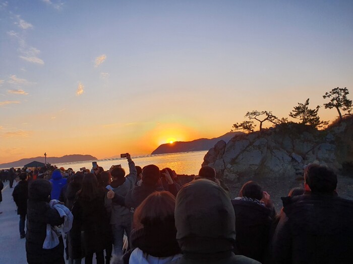 | ▲ 군민 및 관광객들이 해남군 송지면 갈두리 땅끝 맴섬 앞 광장에서 새해 일출을 맞이하고 있다. / 자료사진 = 해남군 제공 |