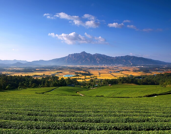 | ▲ 덕진면 운암리 녹차밭에서 본 월출산 전경 / 영암군 제공 |