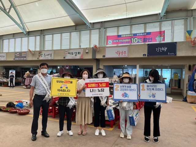 캠페인은 군민이 많이 모이는 장날에 맞춰 강진읍 시장 일원에서 진행했으며, 어깨띠, 피켓을 이용해 주민들의 금연과 절주에 대한 관심을 높였다.