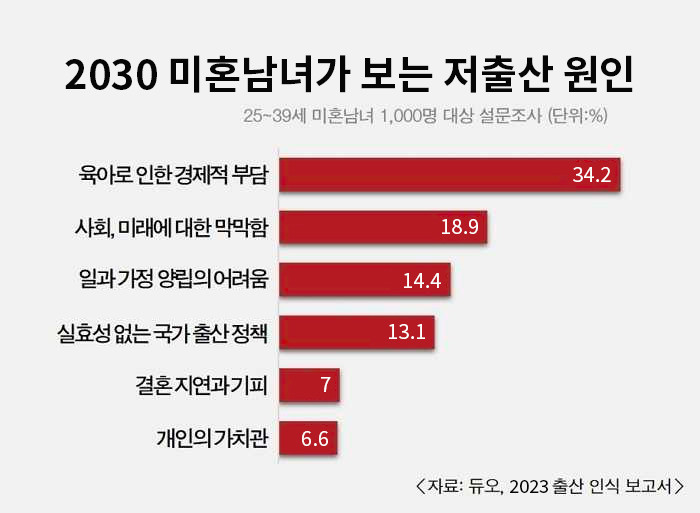 결혼정보회사 듀오 관계자는 “저출산 문제를 심각하게 여기는 미혼남녀들이 점차 많아지고는 있지만, 경제적 부담과 미래에 대한 막막함이라는 현실적인 여건들로 인해 이들이 출산을 기피하고 있는 것”이라며“청년들이 결혼의 행복을 누릴 수 있도록 주거 및 보육 지원, 경력 단절 예방 정책과 같은 실질적 도움이 절실하다”고 전했다.