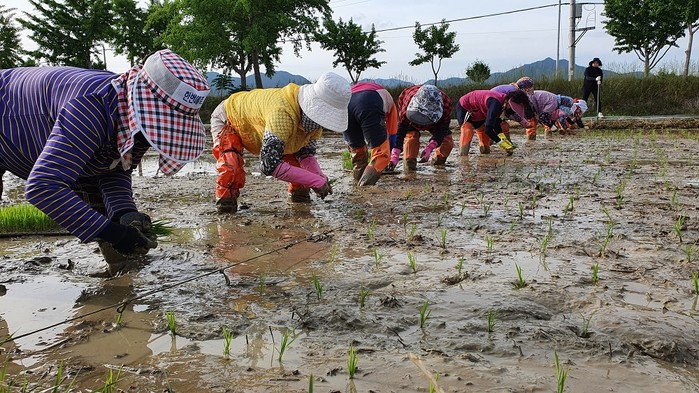 [강진=정찬남 기자] 전남 강진군농업기술센터는 지난 5월 26일 센터 내 벼 품종비교 전시포에서 손 모내기를 추진했다.