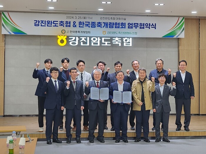이날 협약식에는 김영래 강진완도축협 조합장, 이재윤 한국종축개량협회장, 김경국 강진군 축산과장 등 20여 명이 참석했다.