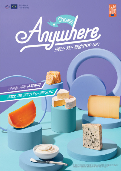 [시민일보 = 이승준 기자] 올해로 세 번째를 맞이한 프랑스 치즈 팝업 <애니웨어 치즈(ANYWEHRE CHEESE)>가 오는 22일 목요일부터 4일간 서울 성동구 성수동에 위치한 까페 구욱희씨에서 열린다. 운영시간은 첫 날과 마지막 날 제외 낮 12시부터 오후 8시까지다.