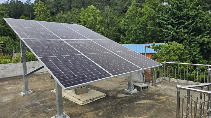 | ▲ 강진군이 신재생에너지 보급을 위해 선정된 한 가정 옥상에 태양광모듈판 설치한 모습 / 자료사진 = 강진군 제공 |