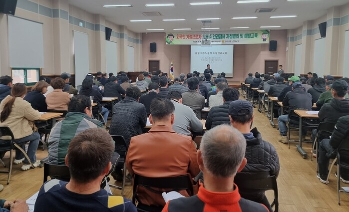 군은 지난 4일 외국인 계절근로자 고용주 150여 명을 대상으로 자정 결의대회 및 인권침해 예방교육을 실시했다.