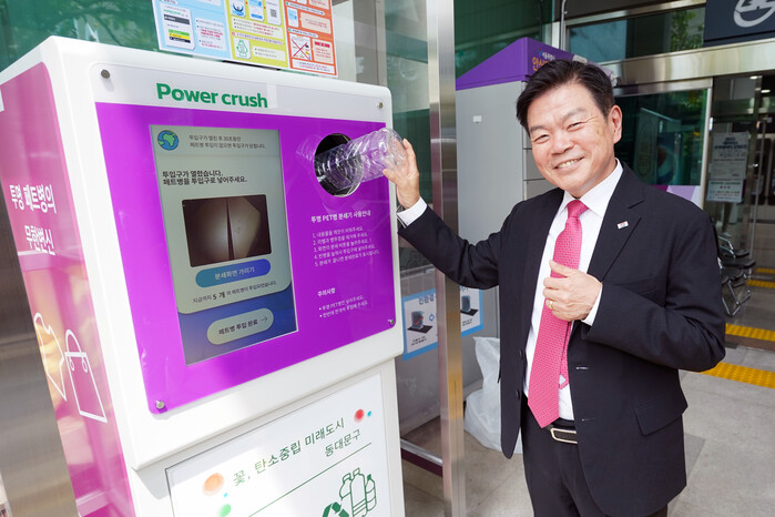 서울 동대문구(구청장 이필형)가 고품질 재활용품인 투명페트병의 회수율을 높이기 위해 관내 4곳에 투명페트병 무인회수기를 설치해 지난 7일 운영을 시작했다.