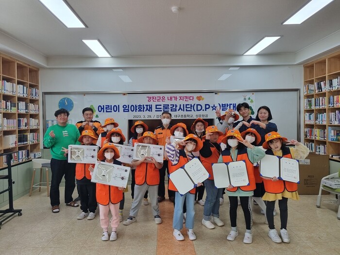 [강진=정찬남 기자] 전남 강진소방서는 지난 29일 강진대구초등학교에서 어린이 임야화재 드론감시단(D.P☆ : Drone Pilot)을 발대한 가운데 봄철 화재 예방을 위해 이달3월부터 오는 5월까지 운영키로 했다.
