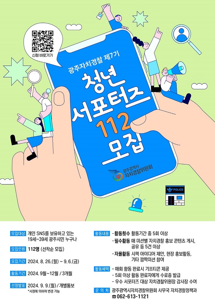 ‘청년 서포터즈 112’는 지난 2021년 7월 광주자치경찰위원회가 전국 최초로 도입‧운영하는 것으로, 자치경찰위원회 주요 시책 등을 사회관계망서비스(SNS)를 활용해 홍보하는 역할을 한다.
