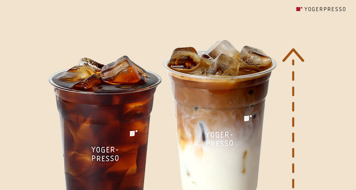 요거프레소는 신규 사이즈 도입과 관련해 가격대비 마음의 만족도를 뜻하는 단어인 '가심비'에 집중하며, XL사이즈 메뉴를 도입했다.