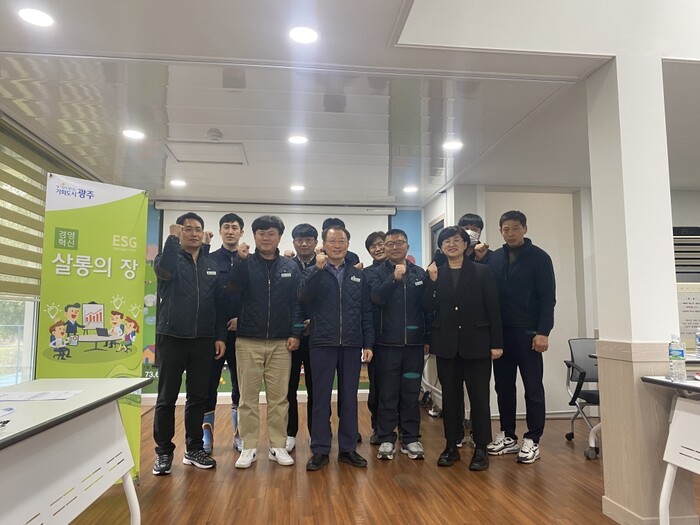 [광주=정찬남 기자] 광주환경공단(이사장 김병수)이 지난 25일 공단 다목적회의실에서 ESG 경영혁신을 위한 직원들의 다양한 창의적 모임에 CEO가 함께 참여한 가운데 자유롭게 토론하는 ‘살롱의 장’의 시간을 가졌다.