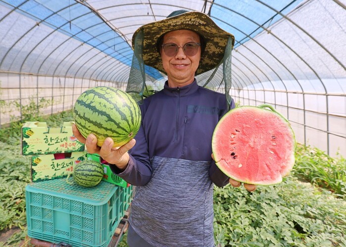 | ▲ 해남산 애플수박을 수확한 옥천면 백호리 서명기 농업인 / 해남군 제공 |
