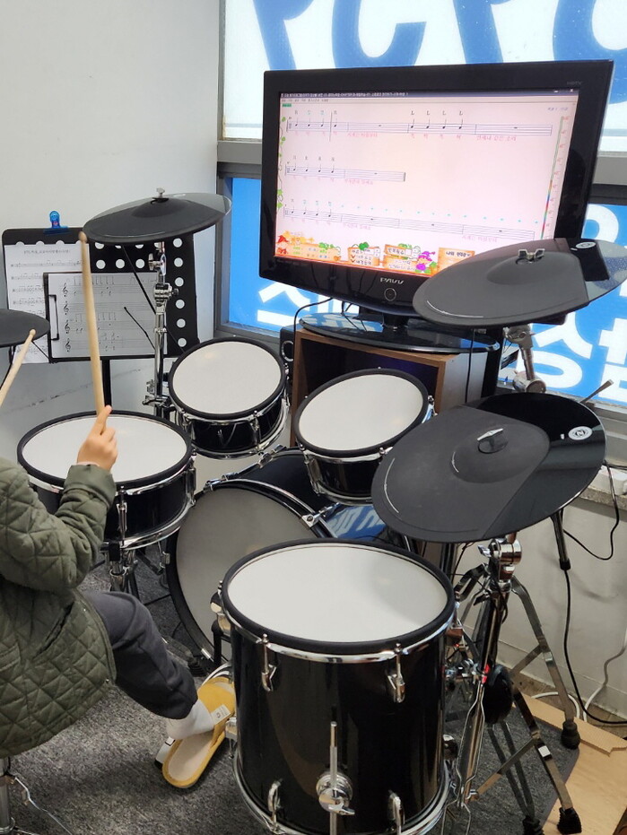 한편 전자드럼은 일반 드럼에 비해 크기가 작아 설치가 용이하며 매월 추가되는 최신가요 20곡의 악보는 초, 중, 고급으로 편곡되어 제공된다