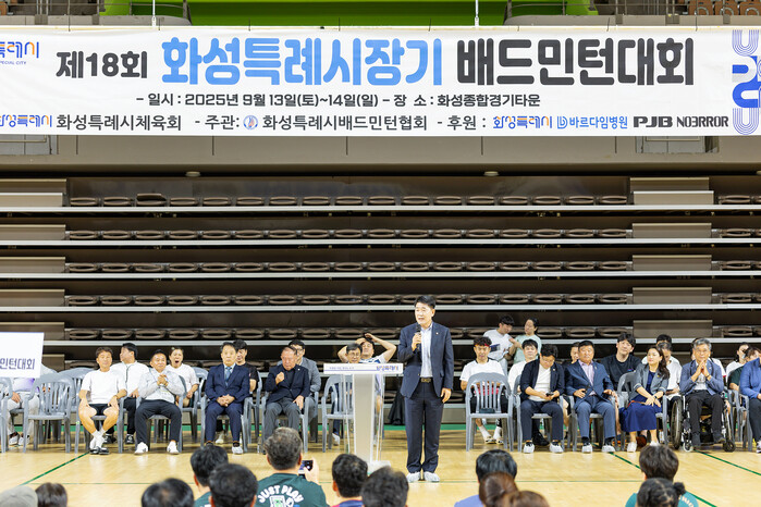 [화성=송윤근 기자] 경기 화성특례시의회는 13일, 화성종합경기타운 실내체육관에서 열린‘제18회 화성특례시장기 배드민턴대회’에 참석해 배드민턴 동호인들의 화합과 생활체육 축제를 축하했다.