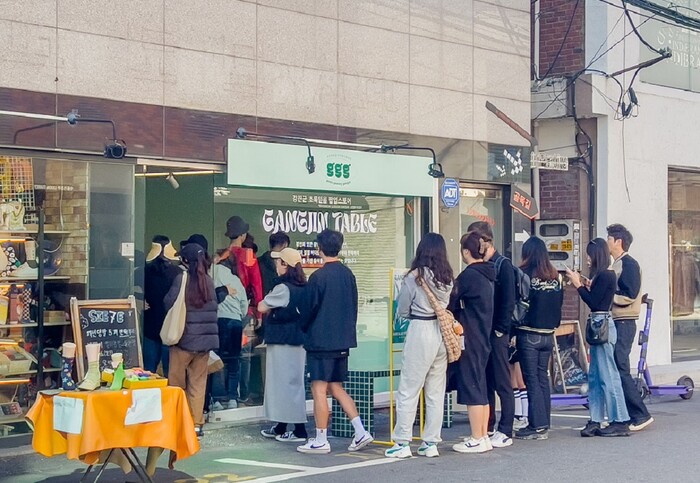| ▲ 서울특별시 성동구 성수동 팝업거리(연무장길)소재에서 지난 10월 27일(금)부터 29일(일)까지 운영하고 있는 강진군 초록믿음 ‘Gangjin Table in 성수’ 팝업스토어에 시민들이 줄을 잇고 있다. / 강진군 제공 |