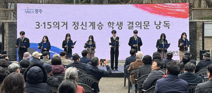 이날 기념식은 3‧15기록영상 상영, 광주3‧15선언문 낭독, 광주3‧15 정신계승 학생 결의문 낭독, 유공자 표창, 기념사 등의 순으로 진행됐다. 특히 광주지역 고등학생을 대표하는 ‘고등학교 학생의회 의장단’이 광주3‧15의거 정신계승을 위한 결의문을 낭독해 의미를 더했다.