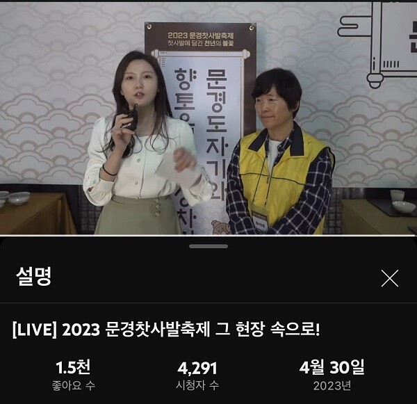 '2023 문경찻사발축제'가 4년 만에 대면 행사로 열린 가운데 시간과 장소의 한계를 뛰어넘은 '유튜브 라이브'를 동시에 진행해 현장의 생생한 열기를 대한민국 전역에 전달했다.