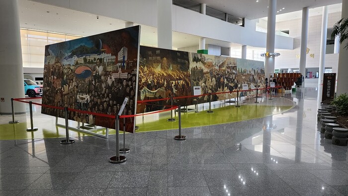 | ▲ 광주광역시, 시청 1층 시민홀 5·18대형역사기록화 작품 전시 / 광주광역시 제공 |
