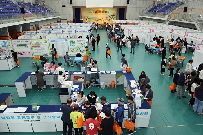 [영암=정찬남 기자] 전남 영암군(군수 우승희)이 지난 10일 삼호실내체육관에서 개최한 ‘2023년 일자리 박람회’에 청년·여성과 중·장년층을 포함한 500여 명의 구직자 참여로 성황을 이뤘다.