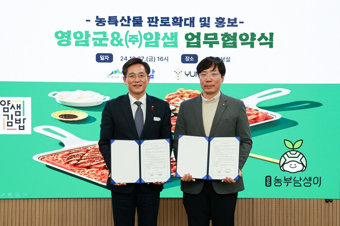 특히, ㈜얌샘은 주메뉴인 김밥에 영암 쌀을 사용하고, 영암의 우수 농특산물을 활용해 새로운 분식 메뉴를 개발해 판매하기로 했다.
