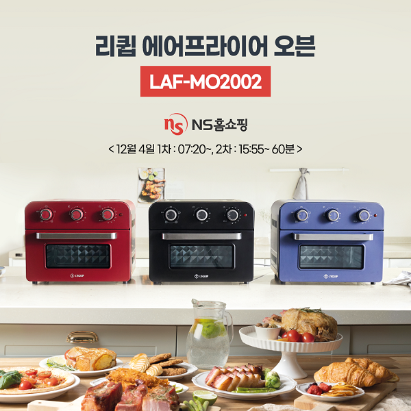 [시민일보 = 이승준 기자] 스마트 주방생활가전 브랜드 ㈜리큅(대표 하외구)이 20L 대용량 에어프라이어 오븐(LAF-MO2002)을 NS홈쇼핑서 원데이 LIVE 특집방송으로 선보인다.