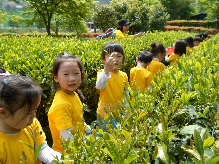 | ▲ 해남군 관내 어린이집 아동들의 두륜산 녹차밭 녹차잎 채엽 체험 / 자료사진= 해남군 제공 |