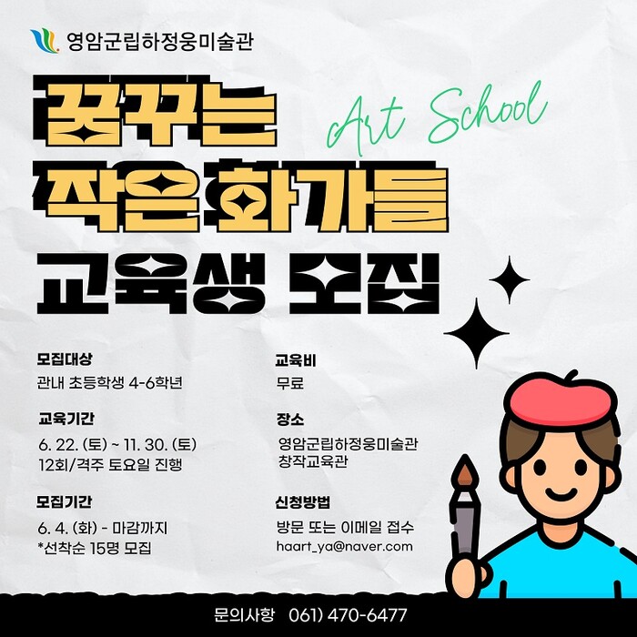 | ▲ 영암군립하정웅미술관, '꿈꾸는 작은 화가들 교육생 모집' 포스터 / 영암군 제공 |