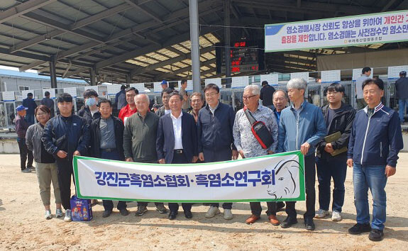 | ▲ 강진군흑염소협회와 흑염소연구회 회원, 충남 부여 가축전자경매시장 방문 기념촬영 / 강진군 제공 |