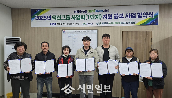 | ▲ 영암군농촌신활력플러스추진단, 지난 3일 추진단 사무실에서 액션그룹 대표, 회원 등과 ‘2025년 농촌신활력플러스사업 액션그룹 사업(1단계) 지원 공모사업 협약' 자료사진 / 영암군 제공 |