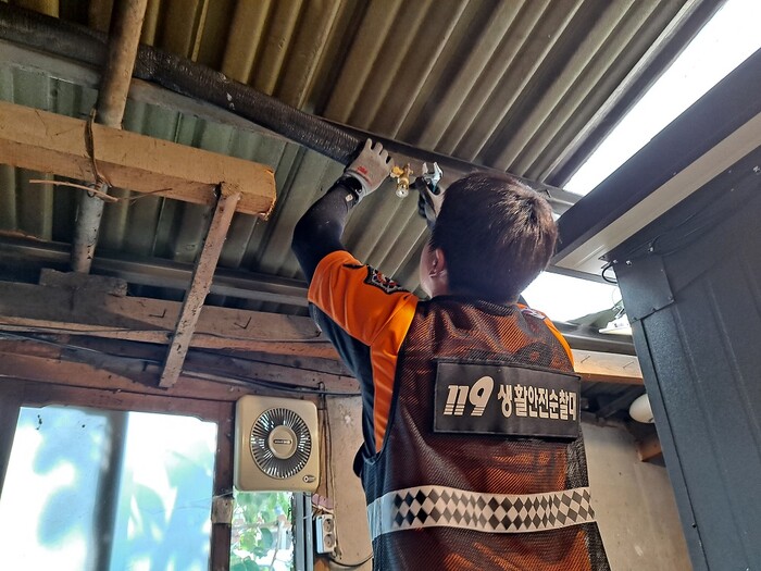 이달(6월)에는 생활안전순찰대와 전문의용소방대원들이 대상 가구의 화목보일러실에 주택화재안전물품 설치 및 주택의 화재 위험 여부 등에 대해 화재안전점검 서비스를 실시했다.