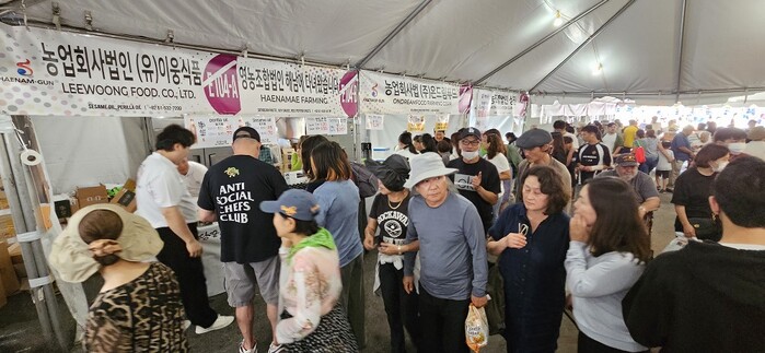 [해남=정찬남 기자] 전남 해남군이 지난 12일부터 15일까지 미국 LA에서 열린 한인축제에 참여해 매출 8,000여만 원을 올리며 모든 물량을 완판했다.