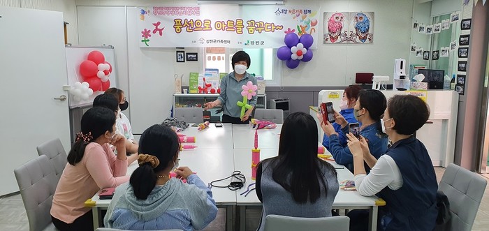 | ▲ 강진군이 운영하고 있는 상반기 평생학습 풍선아트 과정 프로그램에 참여한 수강생들 / 사진=강진군 제공 |