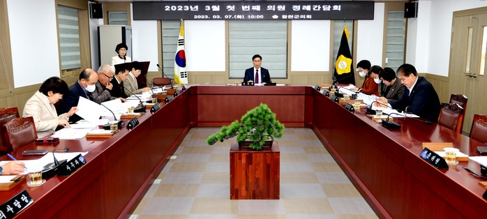 이날 간담회에서는 2023년 취약지역 생활여건 개조사업 공모계획, 인구감소대응업무 추진 현황, 보건소(지소) 진료 공백 대책 보고, 삼가읍성 관련 발굴조사 현장설명회 개최 보고 등 군정 주요현황을 부서장으로부터 보고받았으며, 제271회 합천군의회 임시회 운영을 위한 특별위원회 구성에 관해 논의했다.
