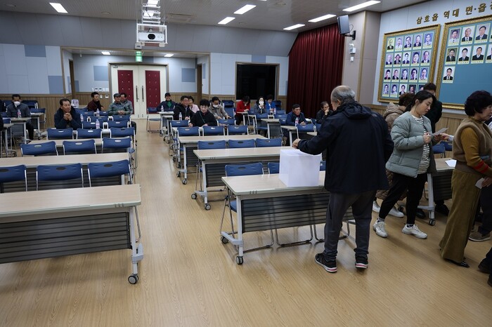 | ▲ 삼호시장 개설 추진위원회, 지난 13일 삼호읍행정복지센터에서 삼호시장 최종입지 주민투표 / 영암군 제공 |