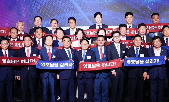 영호남 시도지사·국회의원 등 100명, 수도권에 대응하는 남부권 성장거점 구축을 위한 공동결의문 채택