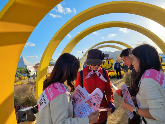 | ▲ 강진군 주민복지과 직원들이 한 행사장에서 주민 및 관광객들을 대상으로 국민기초생활보장제도에 대해 홍보하고 있다. / 강진군 제공 |