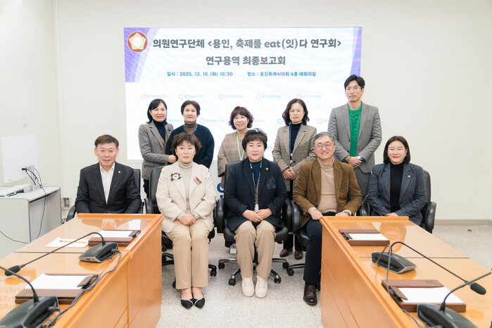 [용인=오왕석 기자] 용인특례시의회 의원연구단체 '용인, 축제를 eat(잇)다 연구회'(대표 장정순)는 16일 의회 4층 대회의실에서 ‘용인시 대표 축제 개발 연구용역’ 최종보고회를 개최하고, 용인의 도시 브랜드 가치를 높일 신규 대표 축제 발굴을 위한 연구 성과를 공유했다.
