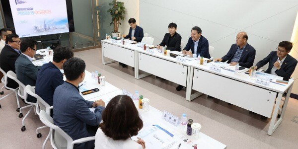 오전 인천스마트시티(주) 현장방문 일정을 소화한 의원들은 오후 경제청 8층 보드룸에서 윤원석 경제청장의 주요 업무보고를 듣고 다양한 의견을 개진했다.