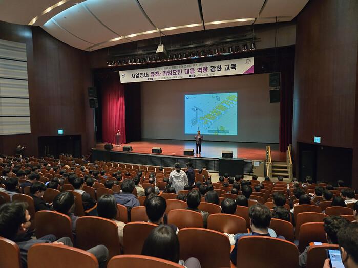 이번 역량 강화 교육은 ▲위험성평가에 대한 이해 및 유해위험요인 대응 방안 ▲위험성평가 후 평과결과 및 감소 대책, 잔존 위험성 등을 주제로 사단법인 한국안전관리사협회 백종주 전문위원 및 위험성평가 컨설팅 수행기관 등의 협조를 얻어 진행되었다.