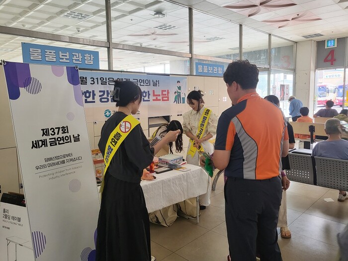 | ▲ 강진군보건소, 지난달 31일, 강진버스여객터미널에서 금연캠페인 실시 / 강진군 제공 |