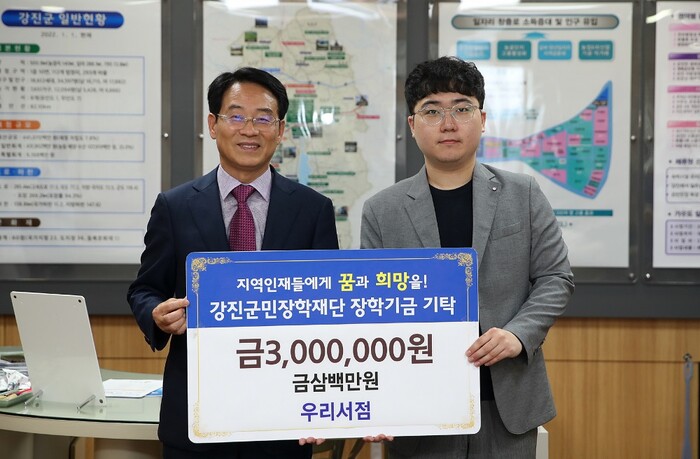 우리서점(대표 김한울)은 지금까지 총 1,010만 원의 장학기금을 강진군민장학재단에 기탁했다.