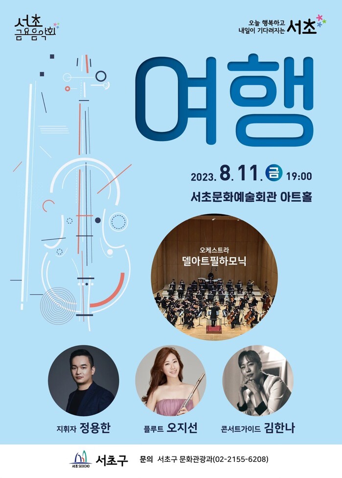 서울 서초구(구청장 전성수)는 오는 11일 오후 7시 서초금요음악회 8월 공연 「여행」을 서초 문화예술회관 아트홀에서 연다.