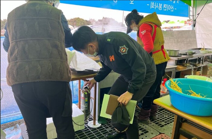 | ▲ 해남소방서, 땅끝매화축제 현장 간이 음식점 부스 화재 예방 안전점검 / 해남소방서 제공 |
