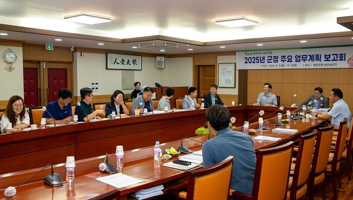 우승희 영암군수 주재로 열린 이번 보고회는, 올해 3분기까지 군정 전반의 진행 상황을 점검하고, 내년에 새롭게 추진할 시책들과 정부·전남도 공모사업 관련 동향 및 대응책 등을 논의했다.