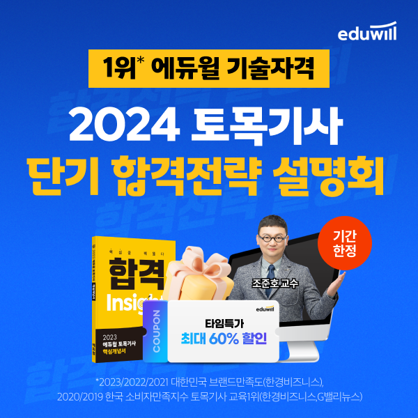 해당 설명회는 에듀윌 토목기사 전문 조준호 교수가 진행하며, 토목기사 시험 정보, 필기 시험 학습 시작 시기, 단기 합격의 가능성 등 2024년 토목기사 시험 단기 합격을 위한 전략을 공개한다.