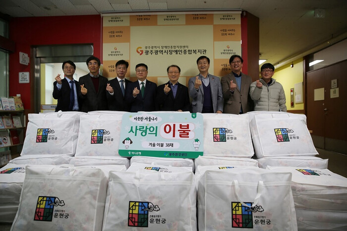 이번 기부 행사에는 광주환경공단 이사장을 비롯한 임직원들과 하나은행 호남영업그룹 부행장 및 관계자들이 참석해, 광주광역시 장애인종합복지관을 직접 찾아 ‘따뜻한 겨울나기 지원’을 위해 준비한 900만 원 상당의 겨울 이불 38채를 전달했다.