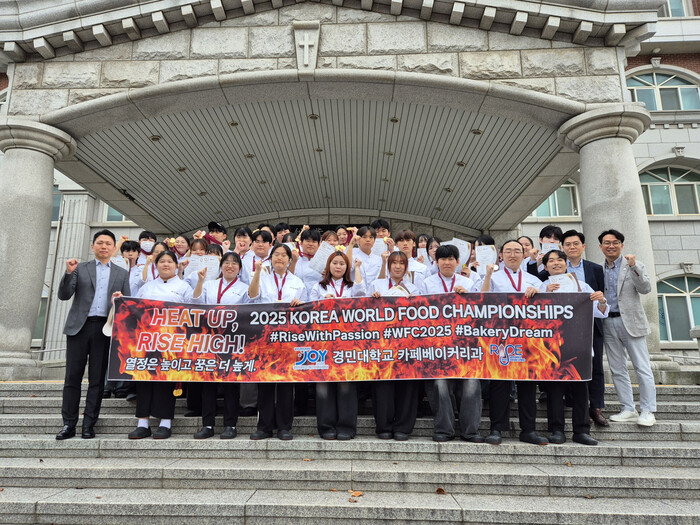 | ▲ 경민대학교 카페베이커리과 학생들과 관계자들이 기념촬영을 하고 있다. (사진= 경민대학교 제공) |