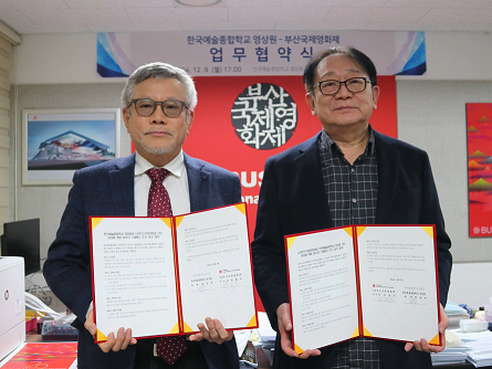 부산국제영화제(이사장 박광수)와 한국예술종합학교 영상원(총장 김대진, 원장 한상진, 이하 한예종 영상원)은 12월 9일(월) 오후 5시 부산 해운대구 영화의 전당 비프힐 4층 회의실에서 업무 협약(MOU)을 체결했다. 이 자리에는 부산국제영화제 박광수 이사장과 한국예술종합학교 최용배 교수 등이 참석했다.