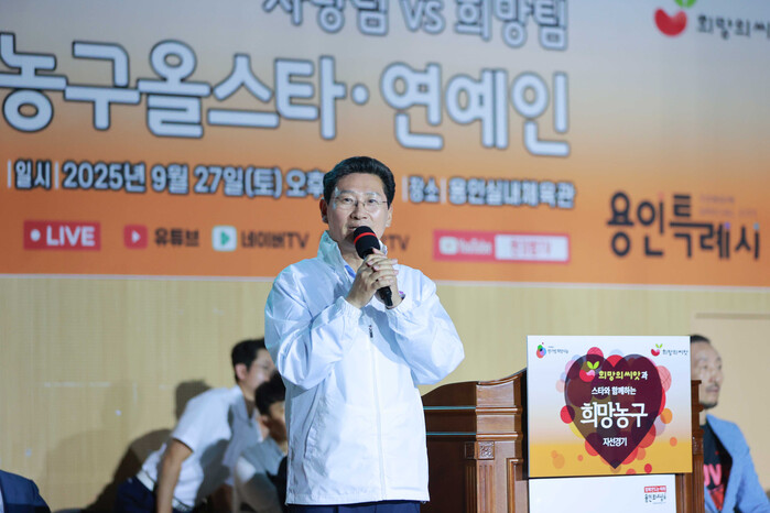 [용인=오왕석 기자] 이상일 용인특례시장은 27일 오후 용인실내체육관에서 열린 ‘2025 희망의씨앗과 스타와 함께하는 희망농구 자선경기’에 참석해 심장병 어린이 등을 돕기 위해 모인 이들에게 감사의 뜻을 전했다.