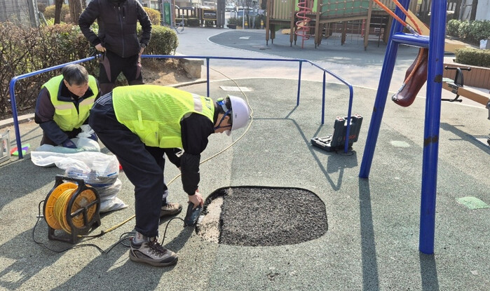 | ▲ 관악구 어린이놀이시설 안점검검 모습. (사진=관악구청 제공) |
